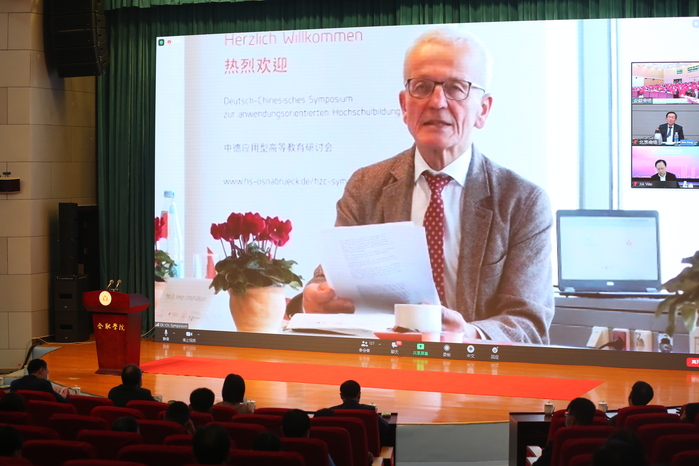 奧斯納布呂克應用科學大學雙元制教育學院院長沃爾夫岡·阿倫斯·費舍爾教授作題為《德國及奧斯納布呂克應用科學大學雙元制教育》的報告。他詳細介紹了雙元制高等教育的發展歷史和現階段的發展情況,他指出,雙元制教育的特點是具有靈活性和應用性,這種學習模式能使學生們在學習理論知識的同時收獲更多的實踐經驗。通過中德雙方十年的不懈努力,雙元制教育模式培養的學生數量不斷增多,教學學科設計更加豐富,教育體系更加完善,尤其是工程學、電子技術、計算機等領域受到企業和學生們的廣泛關注。