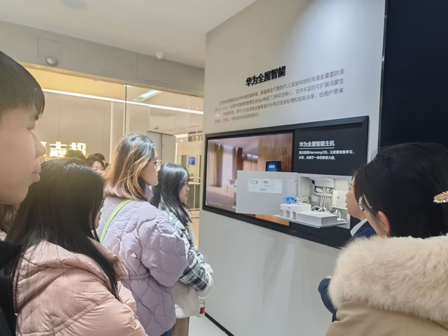 隨后,在華為工作人員的帶領(lǐng)下,大家共同參觀了華為全屋智能體驗(yàn)店和智選車交付中心。在全屋智能體驗(yàn)店中,同學(xué)們親身體驗(yàn)了華為在智能家居領(lǐng)域的最新成果,感受了人工智能和大數(shù)據(jù)技術(shù)如何改變?nèi)藗兊娜粘I睢6谥沁x車交付中心,大家則詳細(xì)了解了華為在智能汽車領(lǐng)域的戰(zhàn)略布局和技術(shù)創(chuàng)新,對未來汽車行業(yè)的發(fā)展趨勢有了更加清晰的認(rèn)識。