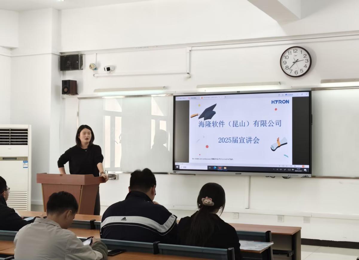 2025年3月21日,海隆軟件(昆山)有限公司在我校36棟208教室舉辦了一場(chǎng)備受矚目的招聘宣講會(huì)。人工智能與大數(shù)據(jù)學(xué)院眾多對(duì)人工智能、大數(shù)據(jù)分析滿懷熱忱的學(xué)子踴躍參與,現(xiàn)場(chǎng)氣氛高漲,互動(dòng)環(huán)節(jié)精彩紛呈。
