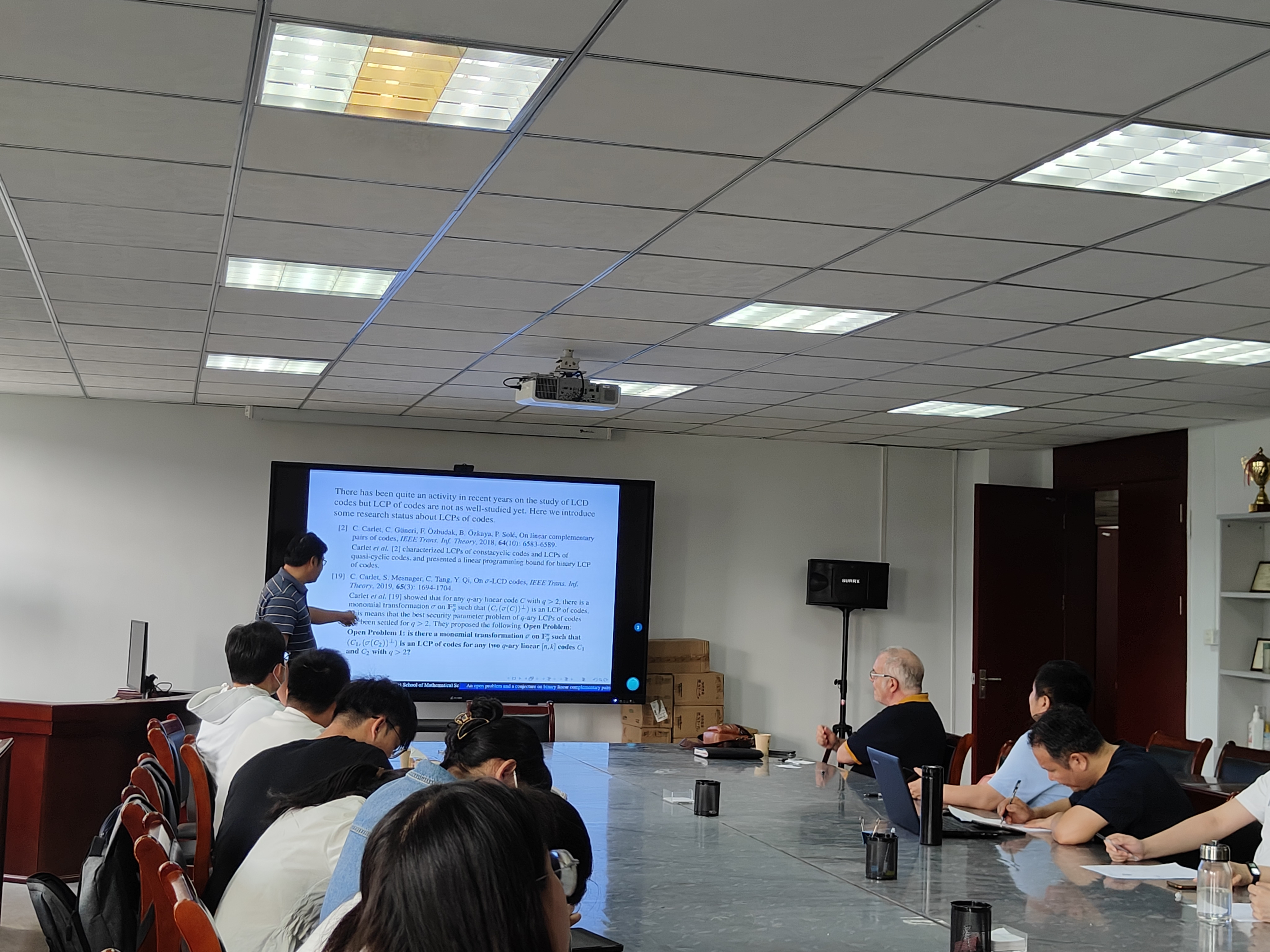 2024年5月24日下午,由科研處和人工智能與大數據學院主辦的題為“二元線性互補對碼的一個公開問題和一個猜想”的學術報告在36號樓305會議室舉行。人工智能與大數據學院青年教師及數學研究生共24人參加。此次報告由余海峰教授主持。