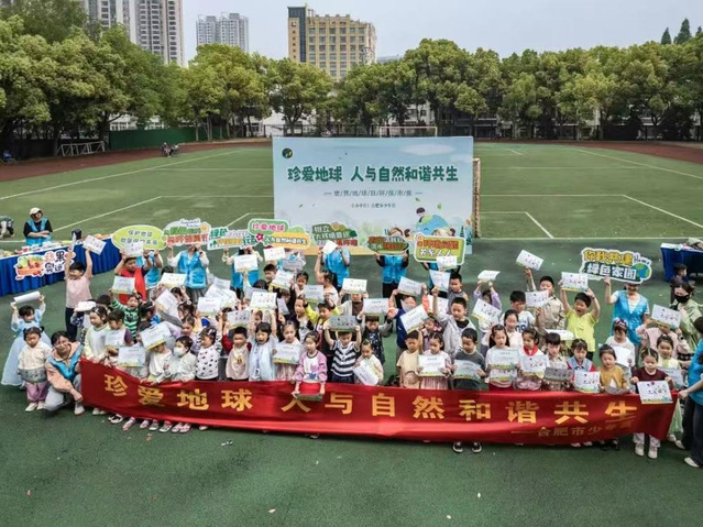 今年的4月22日是第56個世界地球日,恰逢“綠水青山就是金山銀山”理念提出20周年。為進一步引導全社會支持參與自然保護和生態修復,共同建設人與自然和諧共生的現代化,合肥市少年宮蜀山片區于2025年4月19日攜手數百組家庭舉辦了一場別開生面的環保主題市集。孩子們用書籍交換綠意,用創意喚醒舊物,在歡聲笑語中踐行低碳生活,傳遞人與自然和諧共生的綠色理念。合肥大學人工智能與大數據學院學生第二支部積極響應號召,學生黨員們積極參與世界地球日課外志愿活動,以別出心裁的趣味形式吸引眾多市民參與,在社區成功營造出濃厚的環保氛圍。