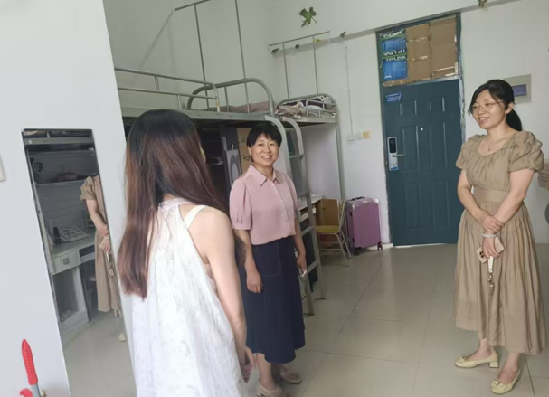 在報道前一天,學(xué)院領(lǐng)導(dǎo)班子成員深入一期研究生男生宿舍,仔細(xì)查看宿舍的設(shè)施設(shè)備和實際情況,并在報道當(dāng)天下午,院領(lǐng)導(dǎo)分別帶隊走訪男生、女生宿舍,為同學(xué)們送去新學(xué)期的關(guān)懷與問候。大家紛紛表示,一定會牢記院領(lǐng)導(dǎo)的囑托,以飽滿的熱情投入到新學(xué)期的學(xué)習(xí)和生活中,不辜負(fù)學(xué)校領(lǐng)導(dǎo)和老師們的期望。