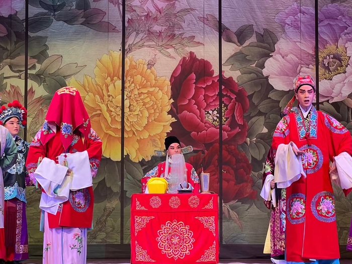 鐘聲悠長,鼓響燈亮,演出正式拉開了帷幕。京劇《誆妻嫁妹》故事情節構思巧妙,用一對玉釧串聯起前后兩部分戲,使俞素秋和韓玉姐兩個人物的故事渾然一體。藝術家們唱念做打,用扎實穩健的唱功、美輪美奐的舞蹈、爐火純青的武旦功夫、生旦凈丑的角色魅力,將戲曲中的人物情緒展現得淋漓盡致。演出在一片熱烈的掌聲中圓滿謝幕。