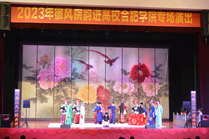 4月27日,2023年“徽風皖韻進高校”合肥學院第二場專場演出——京劇《誆妻嫁妹》在一期致用禮堂舉行,來自安徽省徽京劇院的藝術家們用惟妙惟肖的表演、字正腔圓的唱腔讓900余名師生觀眾沉浸式感受到了國粹的魅力。
