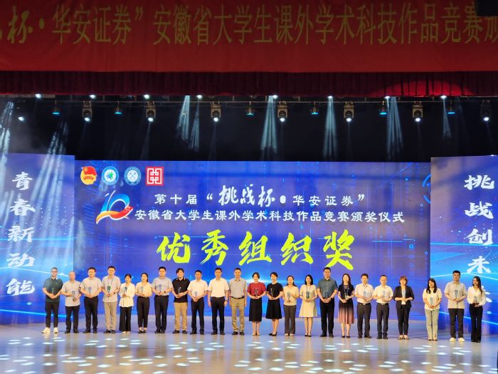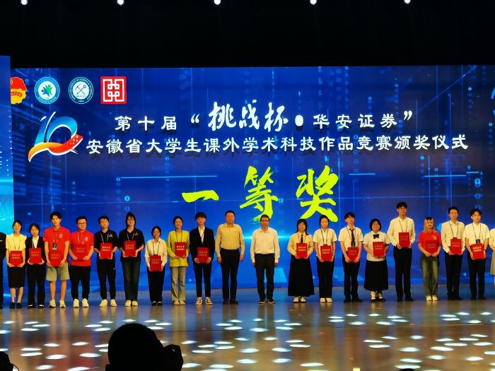 6月11日,第十屆“挑戰杯·華安證券”安徽省大學生課外學生科技作品競賽終審決賽在安徽理工大學落下帷幕。我校14項參賽作品獲獎,其中一等獎1項、二等獎4項、三等獎9項,我校獲優秀組織獎,一等獎作品入圍國賽。