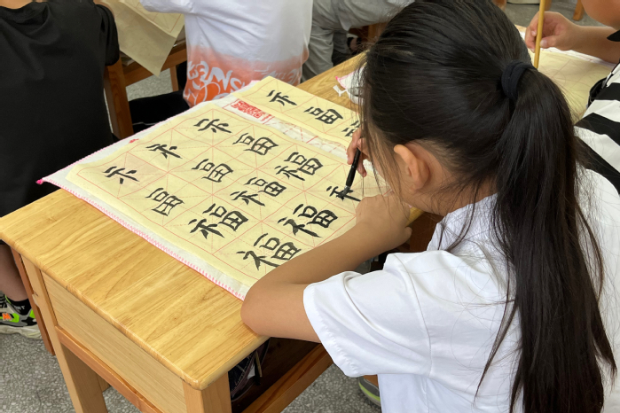 支教活動(dòng)中,課程設(shè)計(jì)國(guó)學(xué)組向當(dāng)?shù)貙W(xué)生介紹古典音樂(lè)、古建筑、非物質(zhì)文化遺產(chǎn)等知識(shí),帶領(lǐng)學(xué)生做八段錦、太極早操,讓他們親身感受傳統(tǒng)文化的魅力。書(shū)寫(xiě)組為學(xué)生們講授毛筆的握筆姿勢(shì)、規(guī)范字的書(shū)寫(xiě)等,充分調(diào)動(dòng)他們學(xué)習(xí)書(shū)法的熱情。志愿者們通過(guò)實(shí)地走訪(fǎng),講解普通話(huà)學(xué)習(xí)方法,大力推廣普通話(huà),有效提升居民“講好普通話(huà)”的意識(shí)。