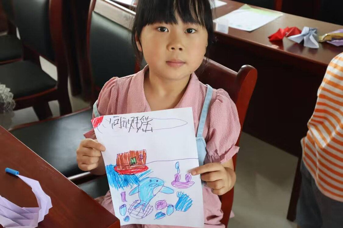 團(tuán)隊(duì)成員通過播放紀(jì)錄片,讓小朋友們感受到父母的辛勤付出和無私的愛。小朋友們用繪畫的形式表達(dá)對(duì)父母的感激,五彩斑斕的畫筆繪出了他們無限的感恩與愛。志愿團(tuán)還開展了防溺水安全宣講,詳細(xì)講解了水上安全的重要性以及常見的溺水事故原因,幫助他們學(xué)習(xí)正確的自救技巧,現(xiàn)場(chǎng)還開展了實(shí)踐演練,增強(qiáng)他們對(duì)自救技巧的全面認(rèn)識(shí)。“中國(guó)式現(xiàn)代化是人與自然和諧共生的現(xiàn)代化”。志愿團(tuán)通過播放《一條鯨魚的尾巴》保護(hù)環(huán)境宣傳片,對(duì)小朋友們進(jìn)行生態(tài)保護(hù)教育,讓他們深刻認(rèn)識(shí)到生態(tài)保護(hù)的重要性。