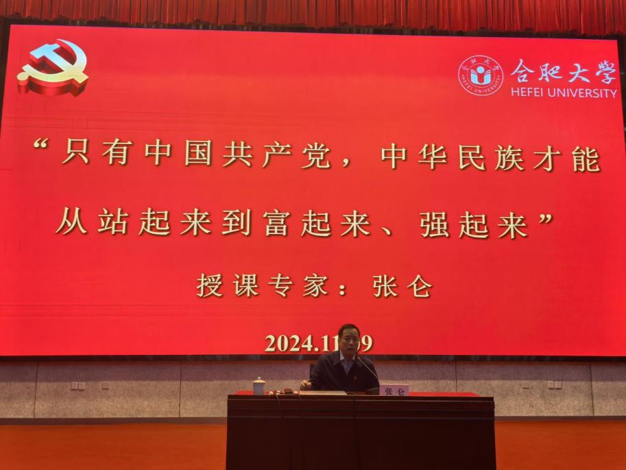 119日下午,合肥大學2024年入黨積極分子培訓班理論授課第二講在圖書館報告廳A舉行,本次黨課主講人由安徽省高級人民法院原二級巡視員、省委選派非公黨建指導員張侖進行授課,共77名黨校成員參加本次課程,黨課主題為“只有中國共產黨,中華民族才能從站起來到富起來,強起來”。