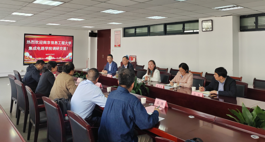 2025年3月26日,南京信息工程大學集成電路學院黨委書記唐敏、院長程知群等領導一行來我院調研交流,交流座談會在40棟305會議室召開,學院黨委書記杜娟、院長胡學友、黨委副書記蔡靈美、電子信息系主任張勝、教學辦主任石朝毅參加會議。