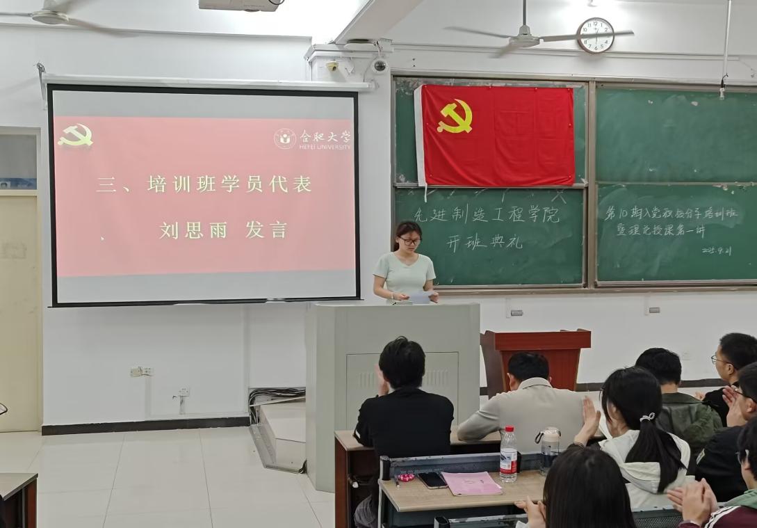 2024級(jí)機(jī)械電子工程劉思雨同學(xué)作為入黨積極分子代表發(fā)言。她談到,黨的事業(yè)崇高而偉大,前行道路充滿挑戰(zhàn)與機(jī)遇,需要每一位心懷赤誠的有志青年勇?lián)姑?、躬身踐行。發(fā)言中,她向全體入黨積極分子發(fā)出倡議:在黨校學(xué)習(xí)期間,要以端正嚴(yán)謹(jǐn)?shù)膽B(tài)度投入學(xué)習(xí),珍惜這一淬煉思想、提升覺悟的寶貴契機(jī),以無畏的勇氣直面成長路上的挑戰(zhàn),始終以共產(chǎn)黨員的標(biāo)準(zhǔn)嚴(yán)格要求自己,在思想與行動(dòng)上向黨組織靠攏,爭取早日成為光榮的共產(chǎn)黨員,為黨的事業(yè)貢獻(xiàn)青春力量。