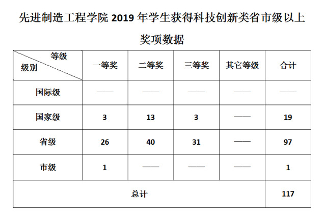 先進制造工程學院2019年學生獲得科技創新類省市級以上獎項數據