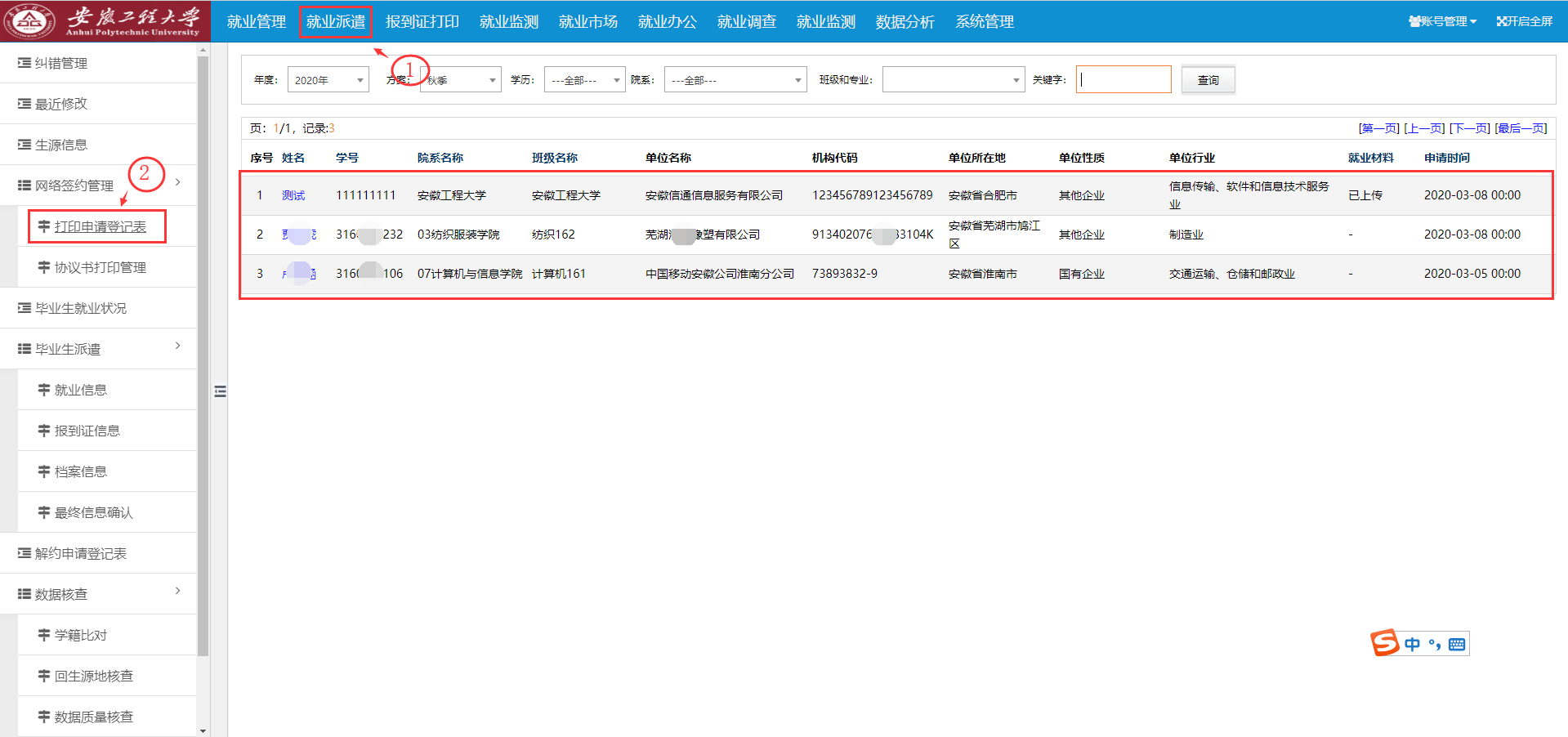 如果學生選擇回生源地的,也請學生跟企業溝通好,輔導員系統審核后直接打印出協議書,維護好系統就業數據并交給就業中心;