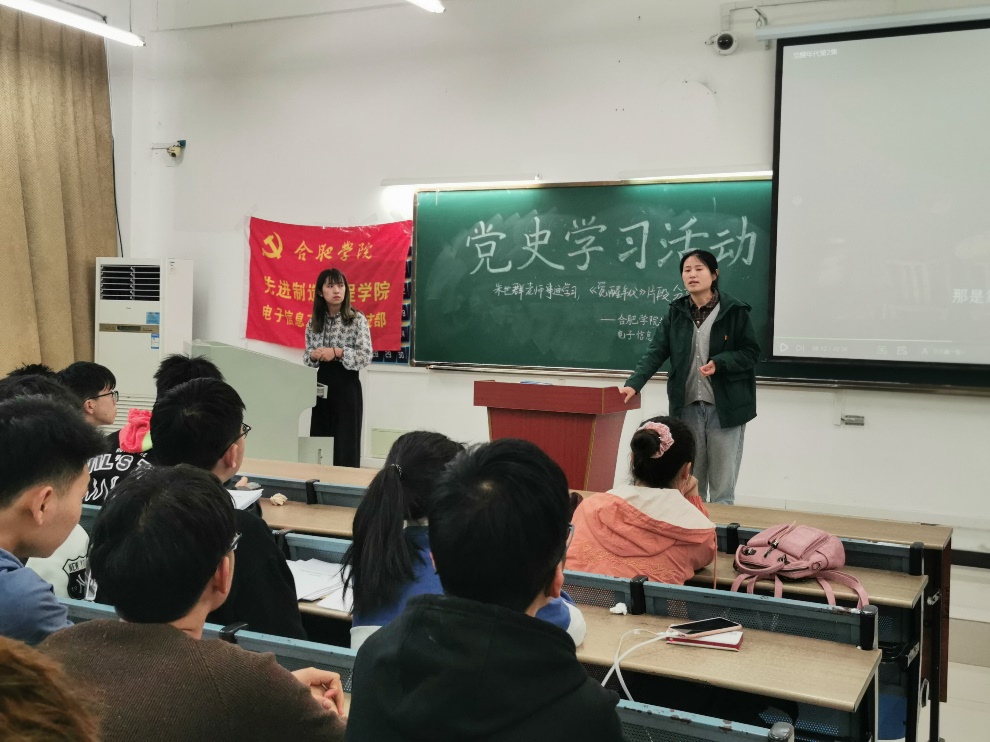2021410日,電子信息工程學生黨支部在35107教室開展第二次黨史學習教育。本次活動有兩項內容:一是學習朱世群老師事跡,二是《覺醒年代》片段分享——陳獨秀決定創辦《新青年》。此次活動旨在讓廣大黨員和積極分子在黨史學習中能夠自覺將“內化”轉為“踐行”。