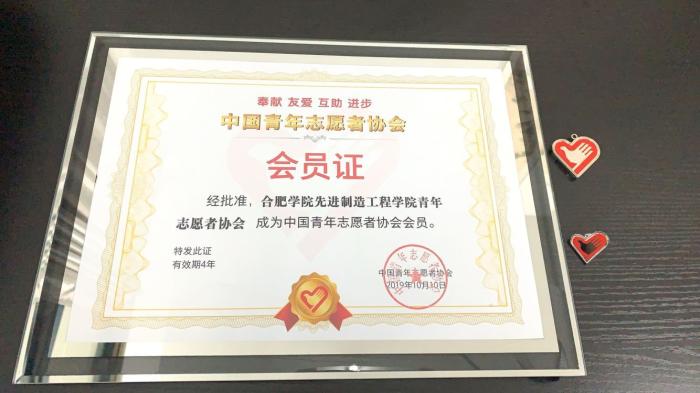 2019年5月,我校原電子系團總支正式向中國青年志愿者協會組委會遞交申報材料,申請成為協會會員單位。9月初,先進院團委書記、青年志愿者協會指導老師李妍妍應邀赴井岡山參與中國青年志愿者協會會員培訓。1010中國青年志愿者協會第五次會員代表大會于北京召開,中宣部、中國志愿服務聯合會,團中央、民政部等主要領導出席會議,會議公示了中國青年志愿者協會單位會員名單,合肥學院先進制造工程學院青年志愿者協會成功入選。2020年1月,會員證下發,先進院青協正式成為中國青年志愿者協會會員單位,同時也是我校唯一入選中國青年志愿者協會的志愿組織。