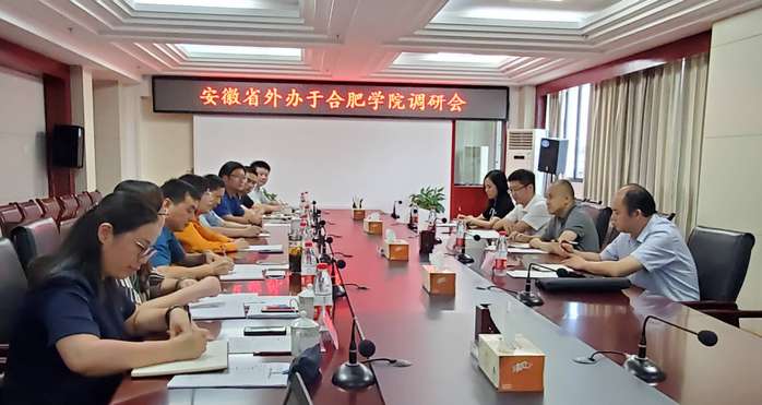 6月19日,安徽省人民政府外事辦公室副主任秦俊峰、出國管理處處長王年寶、禮賓處處長劉鵬等一行來校調研合肥學院中德合作及中德教育合作示范基地建設工作。校長吳春梅在行政樓九樓會議室接待了調研組一行,校黨委副書記劉建中、發展規劃處處長繆群道、國際交流合作處處長賈峰、先進制造工程學院院長呂剛、中德教育合作示范基金辦公室主任劉金平、經濟與管理學院副院長吳悅及國際交流合作處相關人員參加了調研匯報。
