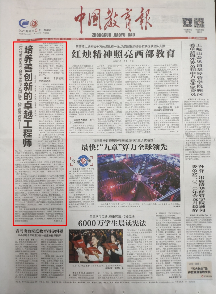引言:12月5日,《中國教育報》頭版頭條報道了我校國際雙元制高等教育。