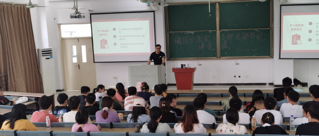 為繼續貫徹踐行通信學生支部“加強政治學習、規范培養發展、創新組織生活”的三大建設原則和“將黨的理論學習運用指導到學生實踐中”的重要建設目標,慶祝中國共產黨建黨100周年,激勵學生黨員深入開展黨史學習教育,牢記初心使命。6月28日星期一下午2:30,通信工程學生黨支部在38棟3階梯進行支部書記講黨課活動,本次黨課的主題是:在疫情中領悟黨史,牢記初心使命。參加本次黨課的人員有:通信工程黨支部書記宋超,黨支部黨員和部分入黨積極分子。