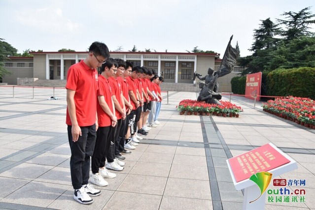 圖為暑期社會實踐團在大蜀山悼念廣場上對革命烈士進行默哀。中國青年網通訊員 耿靖 攝