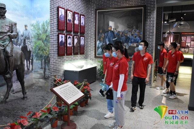 圖為暑期社會調研團隊在參觀渡江戰役中的代表軍人。中國青年網通訊員 耿靖 攝