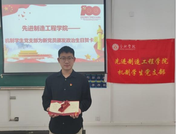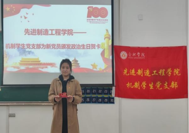 慶祝建黨100周年,全面貫徹新時代黨的建設要求,不斷豐富創新黨支部組織生活的內容和形式,充分展現新時代黨支部的工作風采,2021年11月4日晚,合肥學院先進制造工程學院機制學生黨支部組織開展了“不忘初心、堅定信念,牢記使命、踐行誓言”黨員政治生日主題活動,為6名正式黨員和25名新黨員過了一個別開生面的“政治生日會”。