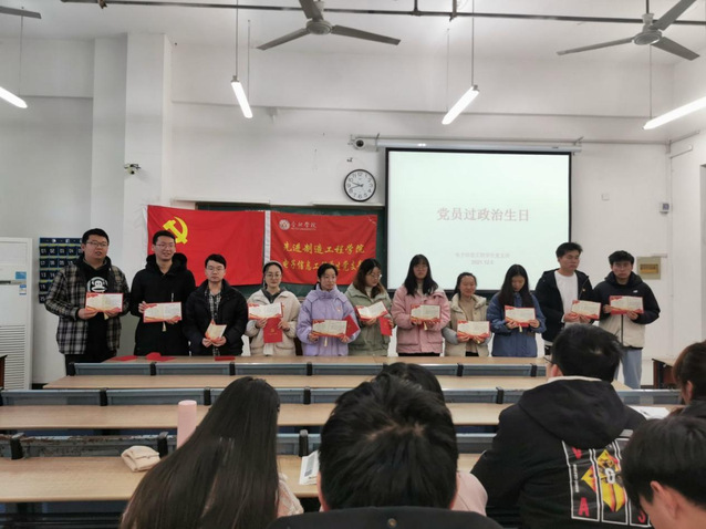 最后,電子信息工程學生黨支部為支部正式黨員過了一次“政治生日”,支部書記朱江老師為正式黨員同志們精心準備了政治生日賀卡,既是祝賀又是勉勵,她強調同志們要牢記自己入黨時的意氣風發與錚錚誓言,將初心使命銘刻于心、踐行于行。