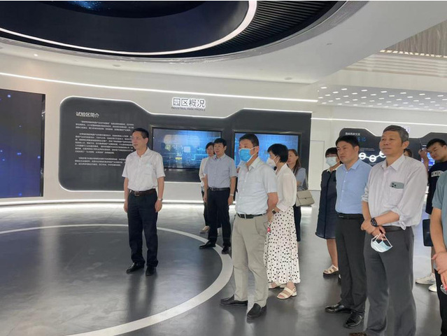 劉建中一行參觀了公司海峽兩岸集成電路產業合作試驗區展示館,并在無塵室的參觀通道進行觀摩。