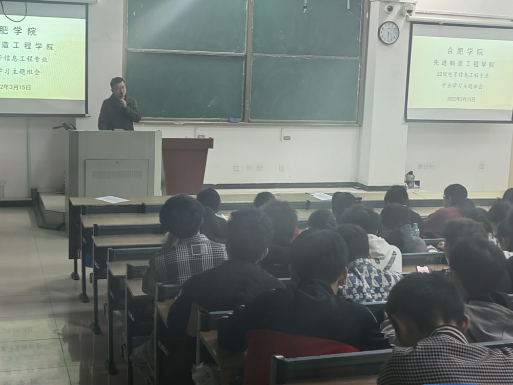 2023年3月15日晚18:30,先進制造工程學院22級電子信息工程專業1、2、3班在38棟2階梯教室召開了學業學習主題班會,班會由輔導員梅志強主持。