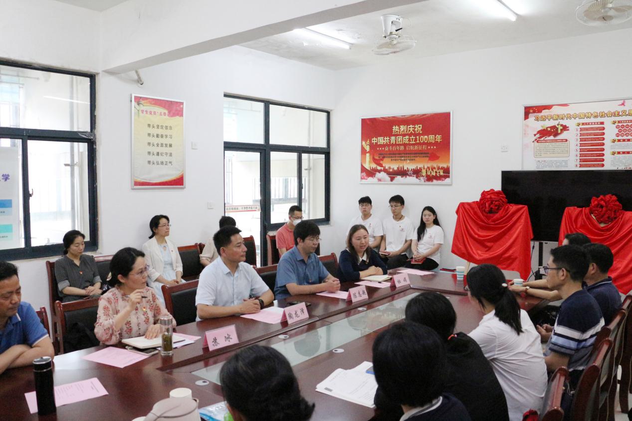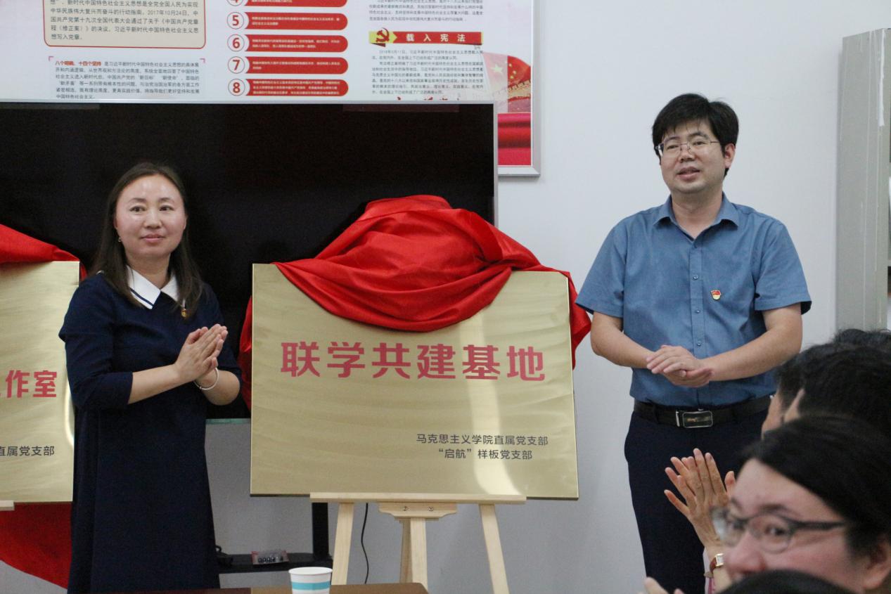 為深入開展學習貫徹習近平新時代中國特色社會主義思想主題教育,進一步提升學校黨建和思想政治工作系統化、精細化水平,更好實現全員全過程全方位育人,6月28日下午,馬克思主義學院與“一站式”學生社區、全國黨建樣板支部聯合共建揭牌儀式暨主題黨日活動在學校三期48號樓一樓“啟航”全國樣板支部工作室舉行。校黨委學工部副部長陶龍澤、先進制造工程學院黨委書記杜娟、馬克思主義學院院長陳志超、馬克思主義學院直屬黨支部書記、副院長蘇冰出席儀式,馬克思主義學院全體黨員教師以及先進制造工程學院機制學生黨支部師生黨員代表參加活動。