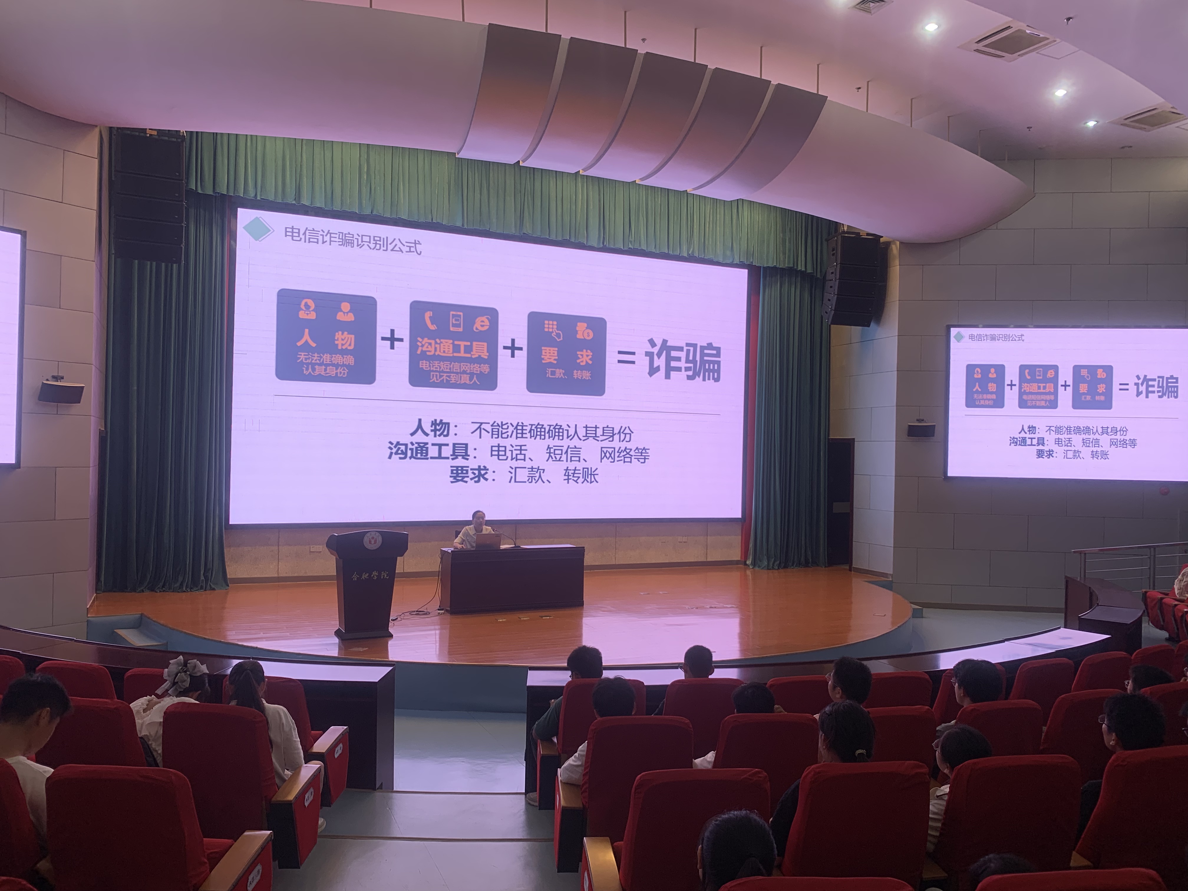 9月27日,院黨委副書記蔡靈美從“什么是電信詐騙”“如何防范電信詐騙”“被詐騙后如何保障自身權(quán)益”等幾個方面為同學(xué)們總結(jié)了電信詐騙的起源、電信詐騙高發(fā)類型、電信詐騙趨勢等反電信詐騙方面的知識,結(jié)合實際案例向同學(xué)們講解了詐騙類型、詐騙手法、詐騙危害及詐騙應(yīng)對方法,希望同學(xué)們一定要增強反詐騙意識,提高反詐騙知識,牢記“天上不會掉餡餅”這個基本常識,做到不貪圖小利、不占小便宜、拒絕陌生電話和鏈接。最后強調(diào)自我防范的重要性,并提醒同學(xué)們一定要安裝注冊“國家反詐中心”APP,為自己加裝一道防火墻,進一步筑牢防騙反詐安全線。院資助工作負責(zé)人威力旺老師向新生們仔細講解了高校關(guān)于學(xué)生的各項資助政策,其主要分為國家資助、學(xué)校資助、助學(xué)貸款、學(xué)生成長和其他資助,加深了在場新生們對我校資助政策的了解。