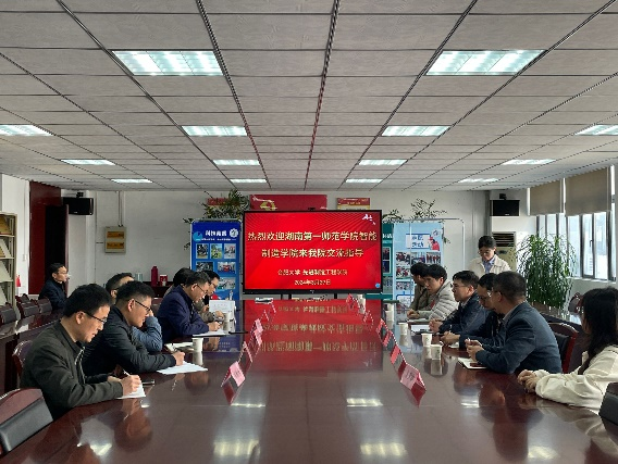 2024年3月29日上午,湖南第一師范學院智能制造學院白斌副院長一行到我院就專業建設進行考察交流。我院胡學友院長、自動化系主任孫強教授出席會議,自動化專業相關教師參加了會議。會議由胡院長主持。