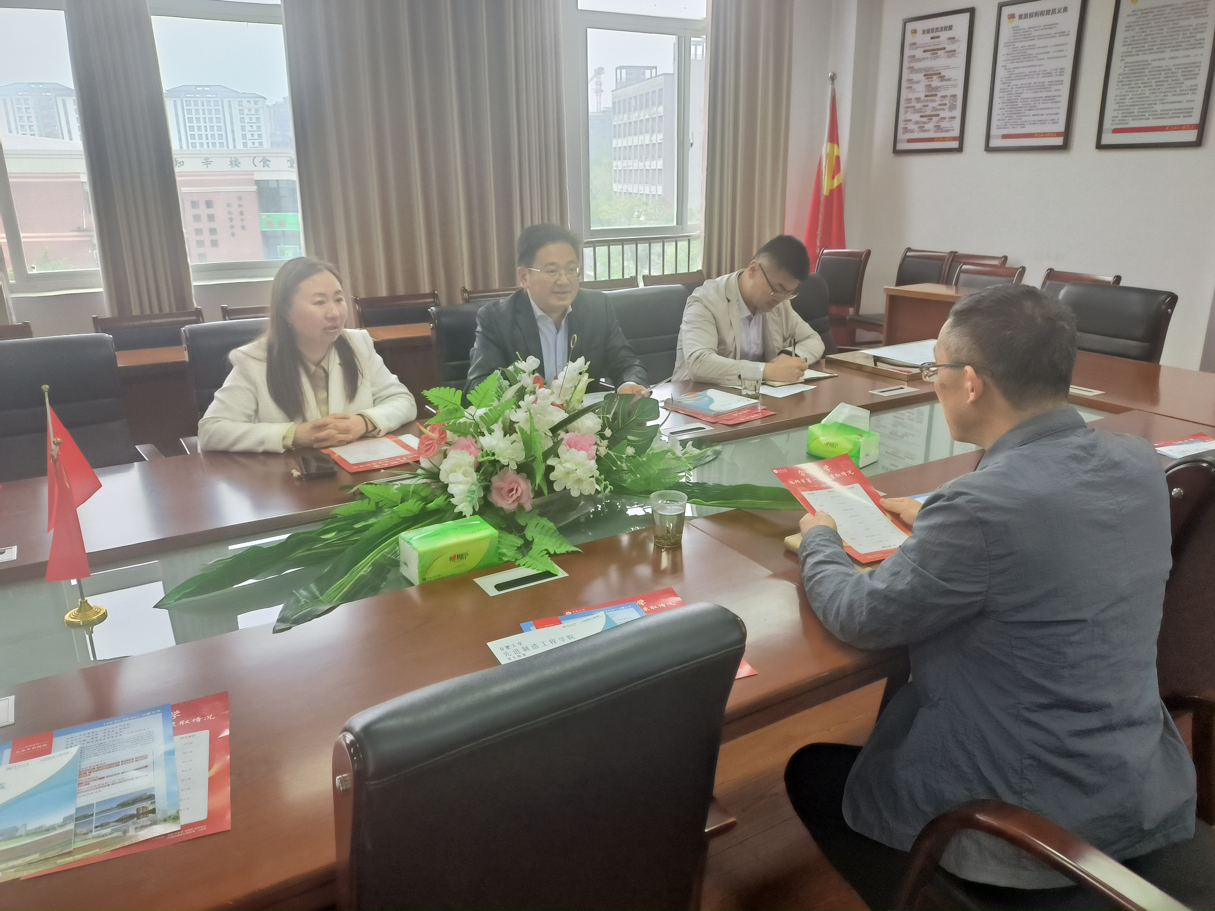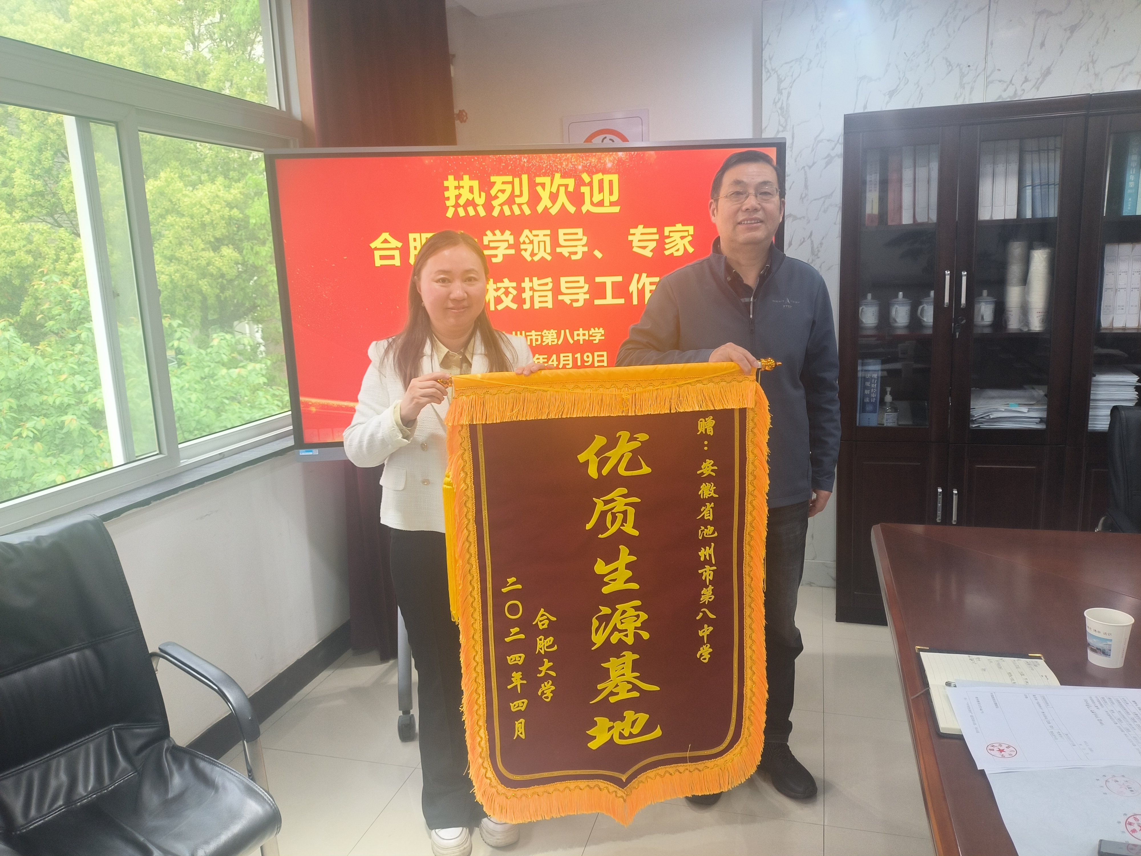 4月19日至20日,先進制造工程學院黨委書記杜娟、副院長胡國華、通信工程專業教師梅腱、先進院就業工作負責人張傲老師等一行人員抵達池州市,分別對合肥大學優質生源基地——池州第一中學和池州第八中學兩所學校進行了回訪。并與校領導及高三年級骨干教師代表開展座談交流,簽訂合肥大學優質生源基地協議,舉行授牌儀式并贈送錦旗。