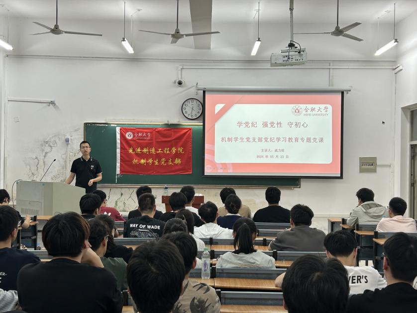 為深入學習貫徹習近平總書記關于加強黨的紀律教育的重要論述,增強廣大學生黨員對正風肅紀的規律性認識,2024年5月23日晚上18:30分,合肥大學機制學生黨支部書記威力旺老師在36棟101教室為支部所有黨員和入黨積極分子講授了題為“學黨紀 強黨性 守初心”黨紀學習教育黨課。