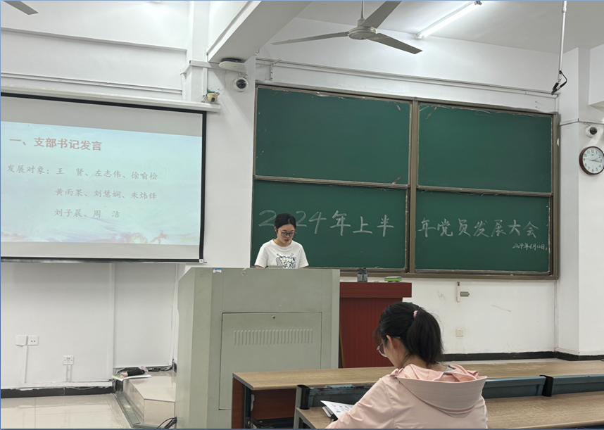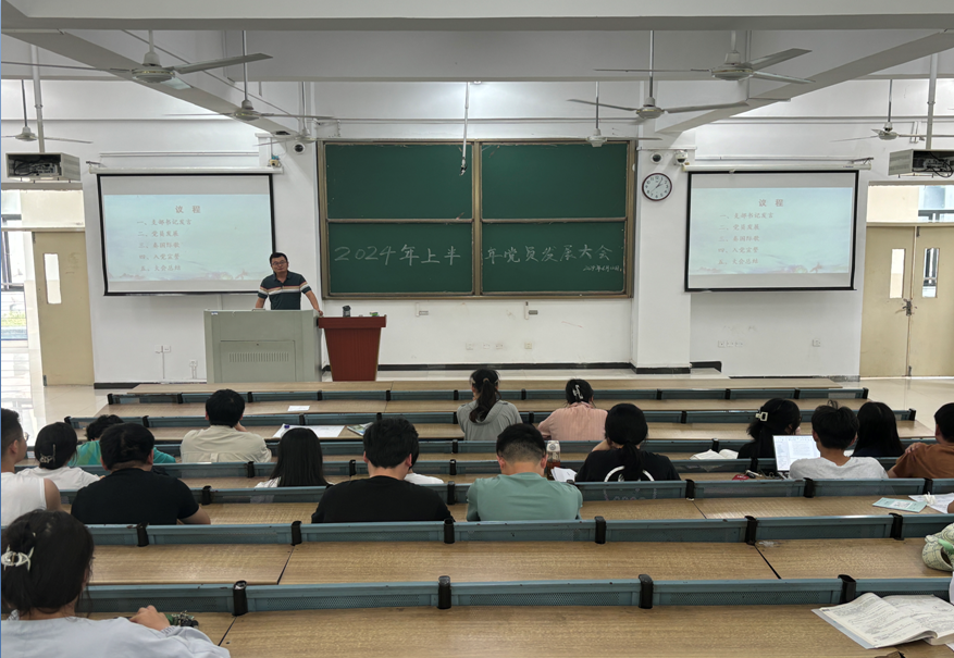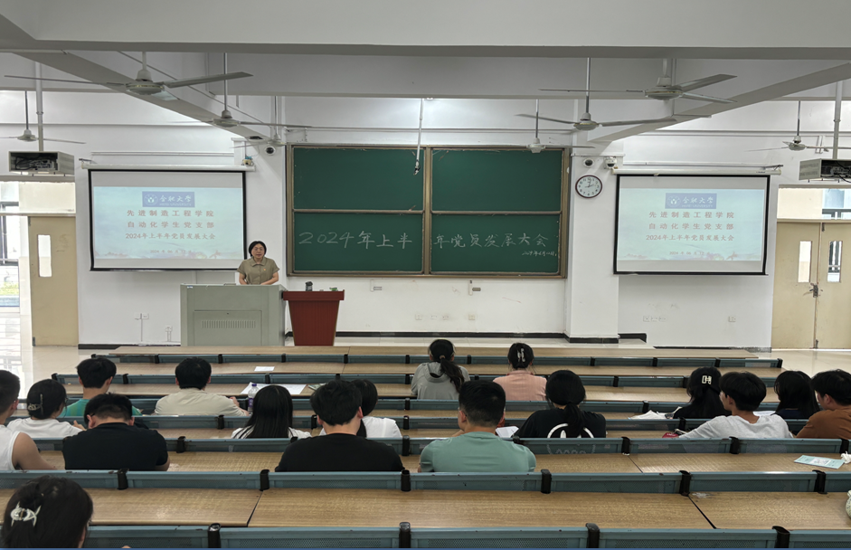 先進制造工程學院自動化學生黨支部2024年上半年黨員發展大會于6月12日在38棟2階梯教室舉行,學院黨委副書記蔡靈美、支部書記梅志強、全體黨員及群眾代表參加此次會議。