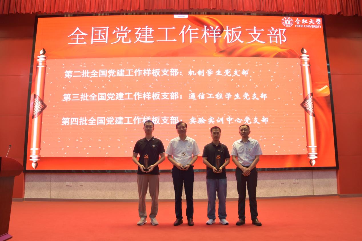 大會集中表彰了學院獲評的全國及全省黨建工作樣板支部、全國及全省高校雙帶頭人教師黨支部書記工作室、安徽省星級黨支部、合肥市星級黨支部等先進基層黨組織,集中表彰了一批在學院黨建和高質量發展工作中涌現出的優秀共產黨員、優秀黨務工作者、優秀專業班主任、就業先進個人等,與會領導為受到表彰的先進集體和優秀個人頒獎。
