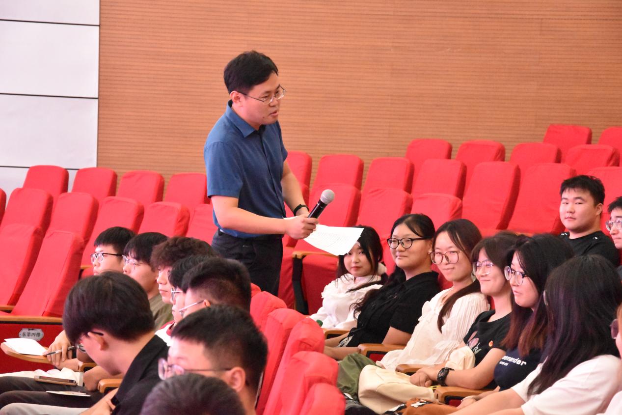 課程伊始,院團委副書記鐘倫鎖上臺致辭。隨后洪欣書記進行授課,授課過程中,洪欣書記向學員們介紹黨的二十屆三中全會的背景、意義,并下臺互動,青馬班成員積極回應,分享學習經驗與活動感受。最后,洪欣書記希望同學們鑄牢政治品德,把握時代主題,聚焦主責主業,切實發揮團員“先鋒隊、突擊隊”作用,勇于擔當、敢于創新。