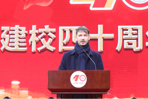 Yu Aihua, Secretary of Hefei Municipal Party Committee, extends his congratulations to all the staff, students and alumni at home and abroad on behalf of Hefei Municipal Government. He says that over the past 40 years, Hefei University has always adhered to its guideline of “Localization, Application, and Internalization”.