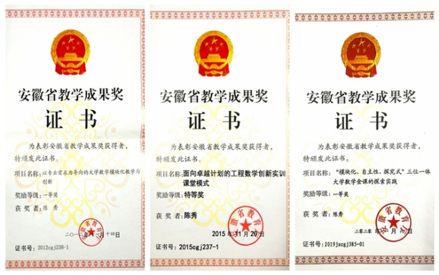 In the past 15 years, the math teaching team won three first prizes and one grand prize of Anhui Provincial Teaching Achievement Award.