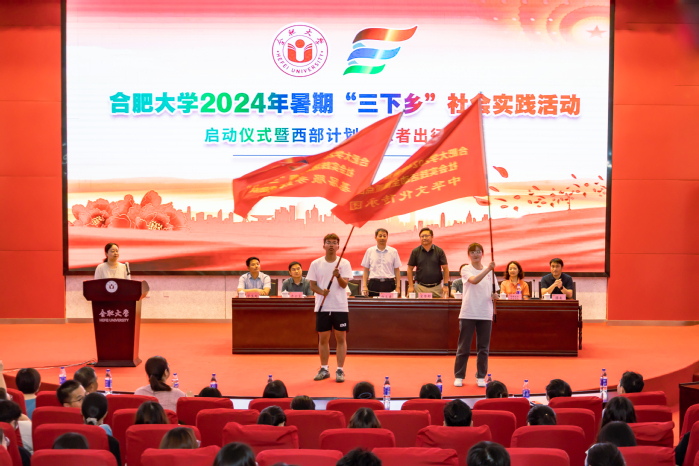 儀式上,校團委書記張應杰介紹今年暑期“三下鄉”社會實踐活動的團隊組建情況。學生志愿者鄔逸凡表達了參加“三下鄉”暑期社會實踐的強烈意愿。馬克思主義學院教師王霞對學生調研工作提出了有效的建議。出席會議的領導依次為全國重點團隊、全國專項及省級專項團隊、校級重點團隊學生代表授旗,為28名西部計劃志愿者頒發紀念品。
