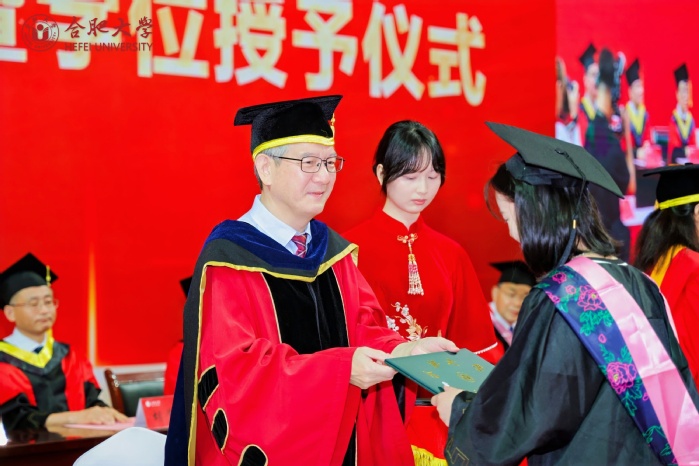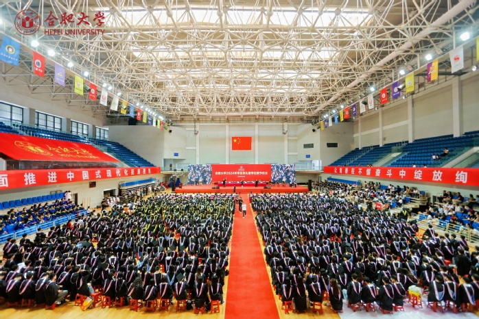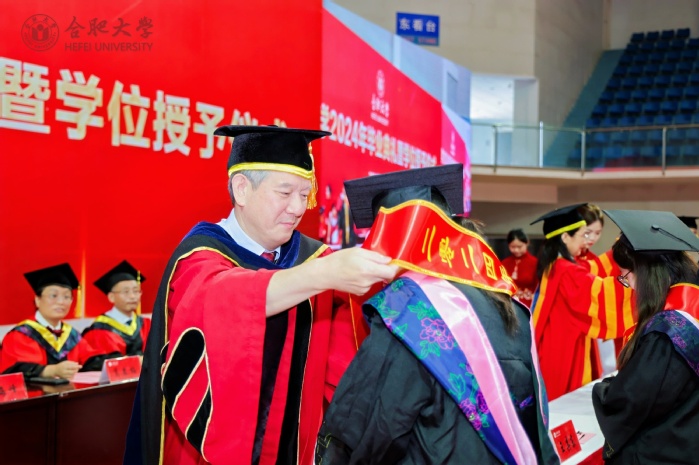 7月3日,合肥大學(xué)2024年畢業(yè)典禮暨學(xué)位授予儀式在體育館舉行。校領(lǐng)導(dǎo)出席,校學(xué)位評定委員會全體成員、2024屆畢業(yè)生代表、職能部門負(fù)責(zé)人、各二級學(xué)院學(xué)位評定委員會成員、教師代表參加。