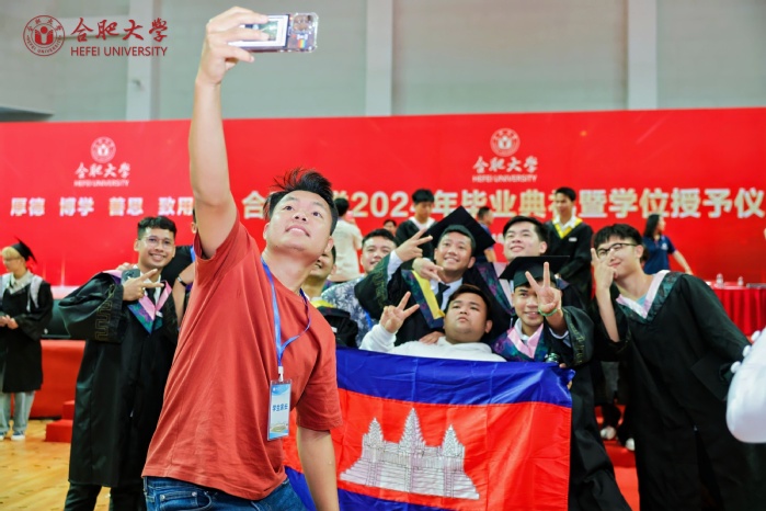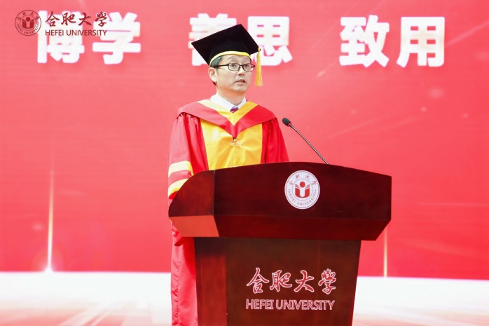 本科生畢業(yè)生代表徐桐、研究生畢業(yè)生代表詹學(xué)娟、留學(xué)生畢業(yè)生代表蘇陽、“西部計(jì)劃”畢業(yè)生志愿者代表徐思揚(yáng)、教師代表孫強(qiáng)教授相繼發(fā)言。徐桐表示將不負(fù)學(xué)校栽培,向下扎根,投身基層,建功西部,在鄉(xiāng)村沃土綻放青春,服務(wù)地方,用行動(dòng)與奮斗為母校增光添彩。詹學(xué)娟向母校和老師致以誠摯的感謝,并回憶了自己在校期間的科研和求學(xué)經(jīng)歷,表示未來將努力提升自我,助力經(jīng)濟(jì)社會的發(fā)展。蘇陽回顧了中柬長期以來友好往來、深度合作的偉大歷程,對“一帶一路”建設(shè)和合肥大學(xué)的培養(yǎng)表示感謝。徐思揚(yáng)講述了個(gè)人“三下鄉(xiāng)”實(shí)踐經(jīng)歷,號召廣大學(xué)子要用自己的知識和力量去服務(wù)人民,推動(dòng)西部地區(qū)的發(fā)展。孫強(qiáng)表示,青年學(xué)子要堅(jiān)守初心,不忘使命,始終保持對學(xué)習(xí)的熱情,做到學(xué)而不輟,勇敢面對未來的挑戰(zhàn)和機(jī)遇,保持積極昂揚(yáng)的精神狀態(tài),最終通向理想的彼岸。