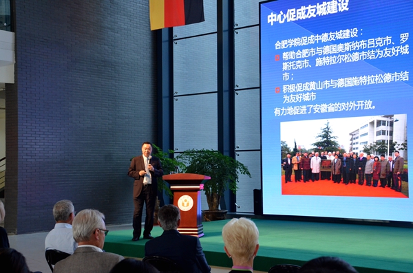合肥學院國際合作交流處處長賈峰、副處長孫建安,北京外國語大學德語系主任、德國研究中心主任王建斌,孔子學院工作處處長張曉慧,德語系辦公室主任邱袁煒,外延培訓中心多語言培訓經理沈磊等陪同與會。