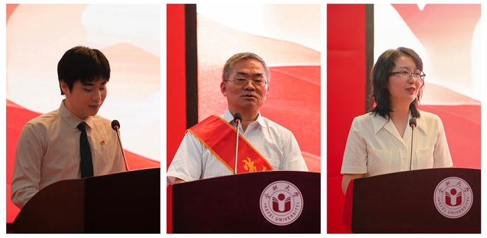 設計學院李澤林同學向老師表示了由衷的感謝,他表示會不負韶華、努力學習,為實現中華民族偉大復興不懈奮斗。語言文化與傳媒學院張冰清老師表示,作為人民教師,責任遠不止傳授知識,要肩負起為黨育人、為國育才的神圣使命。退休教師代表劉俊生回顧了幾十載執教生涯,并對青年教師寄予厚望,希望廣大教師志存高遠,做思想有高度、學識有厚度、精神有朝氣的“新時代良師”。