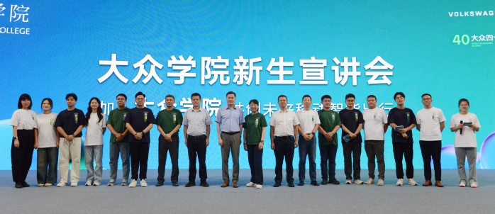 大眾學院招生會上,黨委委員、教務處處長、大眾學院院長王曉峰介紹了大眾學院的發展歷程、建設成果以及人才培養模式,并講解了智能制造工程、數據科學與大數據技術、新能源材料與器件三個“雙元制”專業的學科建設情況。大眾中國學習與發展中心文化及人力資源溝通部高級總監婁屹介紹了大眾汽車的企業規模、產業基地、研發中心、企業文化等。大眾汽車(安徽)有限公司首席人力資源官邵劍介紹了大眾汽車在合肥的發展歷程以及發展遠景規劃。大眾學院學生代表陳政揚、熊文澤和程夢雪分享了學習生活感受,校友趙飛洋分享了在大眾安徽的工作經歷。大眾學院直屬黨支部書記宣躍文和大眾中國學習與發展中心負責人潘欣共同為同學們介紹了招生計劃、參選條件、選拔流程和報名方式,并逐一解答了新生的疑問。