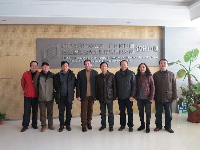 謝海濤主任對霍恩教授在中國新年正月喜慶中的來訪表示熱烈歡迎,并就合肥學院新校區二期以及我院和深圳市建筑裝飾集團共同建立的產學研基地“安徽深裝合大工業設計有限公司”向來賓做了詳細介紹。雙方回顧了近年來在國際交流方面取得的成績,特別是對每年一度舉辦的中德WORKSHOP項目的合作表示充分肯定,對霍恩教授為合肥學院國際交流方面做出的貢獻表示了感謝,并表示,雙方的合作已取得了豐碩成果。隨后,雙方就第十三屆WORKSHOP項目的時間、中德韓臺4方參加的人數、項目選題等問題進行了深入的討論。并就中德學院3+1工業設計專業的學生學習及管理進行了深入細致的探討,謝海濤主任表示藝術設計系將全力配合學校的安排做好3+1工業設計專業的教學工作。