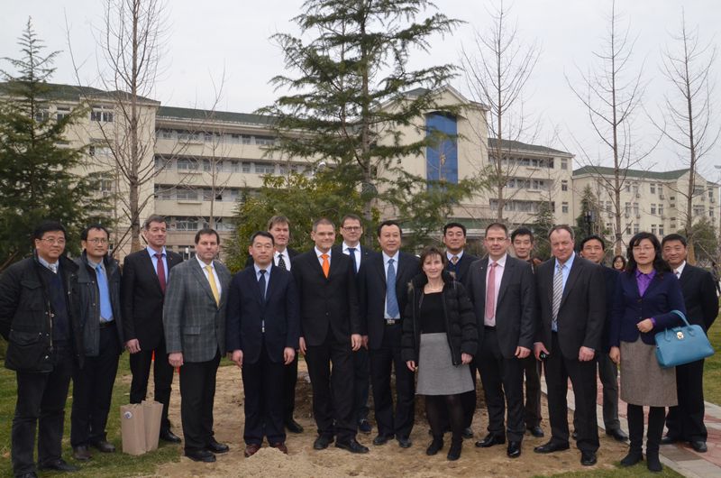 會談前,巴頓市長一行在蔡敬民、張文兵的陪同下,在我院國際友誼林種下了象征雙方友誼的常青樹,并為友誼樹培土、澆水,共同培育雙方的友誼。友誼樹將是我院與施特拉松市友好合作的見證。