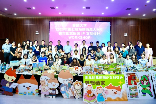 6月30日下午,合肥大學 2025 年第七屆海峽兩岸大學生青年創意田園 IP 文創設計WORKSHOP活動閉幕式在設計學院報告廳隆重舉行。安徽省人民政府臺灣事務辦公室副主任邵琳、三級調研員張俊臣,安徽省教育廳外事處副處長劉飛,合肥市瑤海區副區長夏軍,合肥大學黨委副書記、校長任永,黨委委員、副校長王曉峰等領導出席,相關部門、二級學院負責人與兩岸高校師生共60余人齊聚一堂,共同見證這場創意盛會的圓滿落幕。