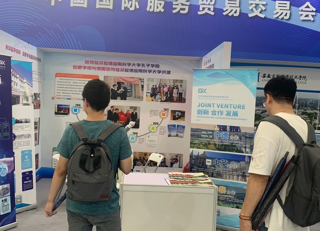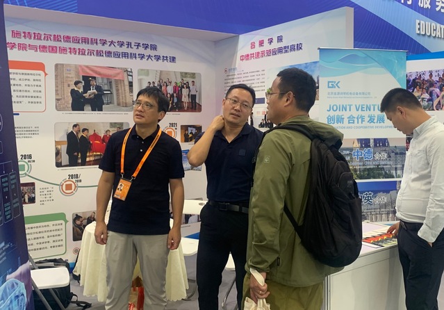 202383096日,我校應邀參加在北京首鋼園舉辦的2023年中國國際服務貿易交易會教育服務專題展。本次服貿會以“開放引領發展,合作共贏未來”為主題,國家主席習近平在服貿會全球服務貿易峰會發表視頻致辭。教育服務專題展設置國際交流與合作、人工智能與科技賦能、教育服務與實踐創新等重點內容,集中展示教育服務領域的新技術、新成果、新場景和新業態。我校充分展示了學校近年來在國際合作與交流、尤其是中德合作、來華留學、孔子學院等領域的特色和優勢資源,受到各級領導、國內外合作商及廣大訪客的高度肯定和積極關注。
