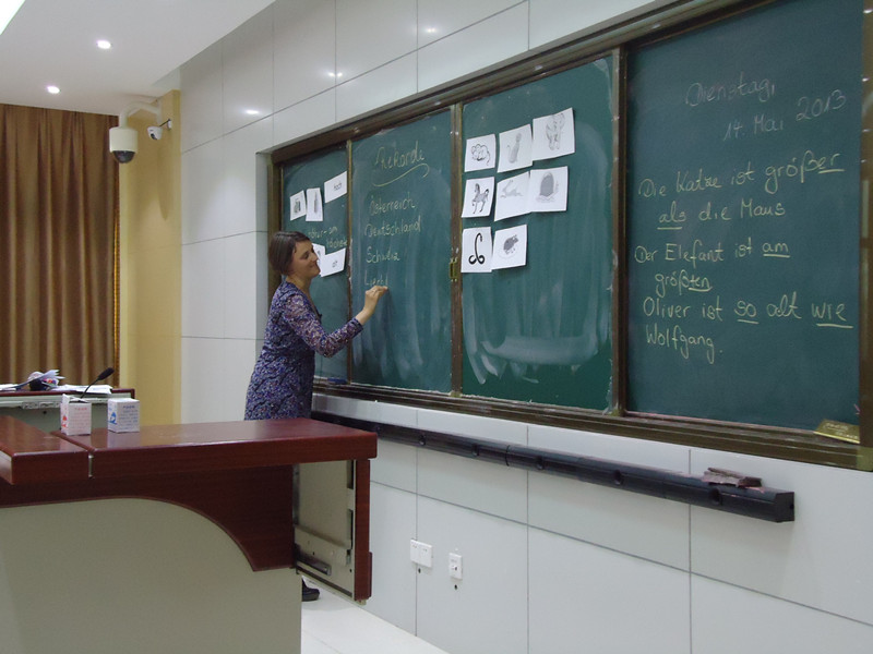 德國下薩克森州政府非常重視我院的對德合作,二十多年以來,不間斷地選派優秀人員長駐我院,幫助我院開展德語教學工作,不斷提高德語教學質量,以促進各合作項目的順利開展。Boehm女士是下薩克森州科文部最新派駐我院的德語教學代表,她在德國是一所中學的校長,具有豐富的教學管理及語言教學經驗。自本學期到任以來,承擔了大量的教學任務,授課生動活潑、形式多種多樣,深受同事們的尊重和學生們的歡迎。在本學期初,她為2010級兩個3+1專業學生開辦德福考試培訓班,雖然時間不長,但還是收到了非常好的成效。