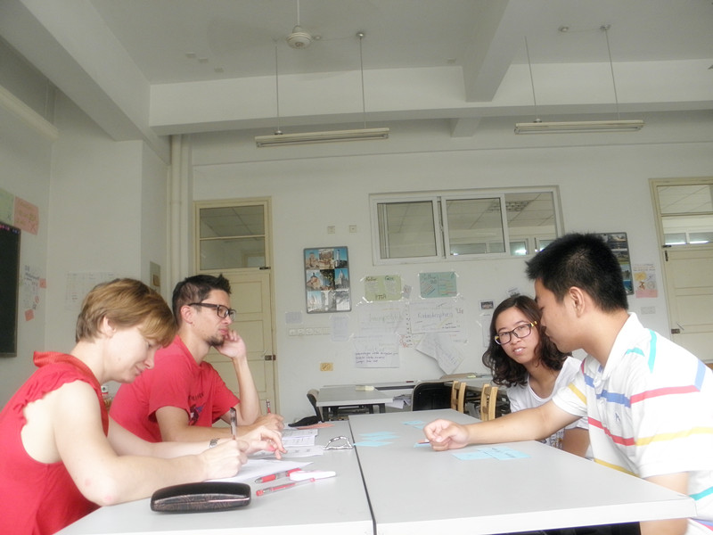 繼上學期組織期末德語統考之后,本學期末,6月14-15日,我部門再次組織德語統一考試,參照TestDaF(德福測試)的階段水平要求統一標準命題,以便檢查教學效果、總結經驗、比較差距、促進德語學習教學質量的不斷提高。6月14日統一筆試之后,中外教師立即進行了集中閱卷,15日又在同一時間組織學生進行了口試。