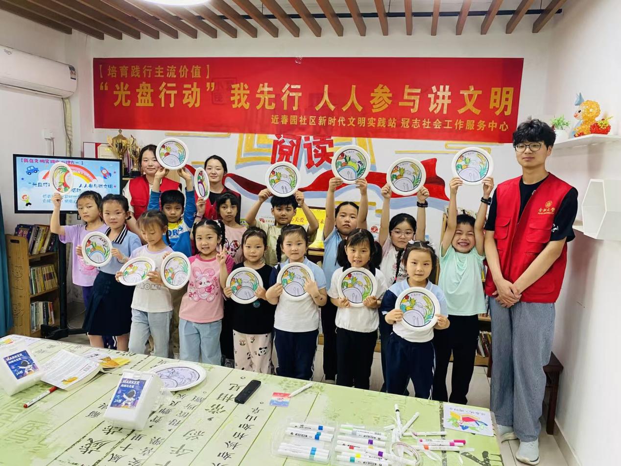 活動接近尾聲時,孩子們高舉著自己精心制作的“光盤承諾盤”,與志愿者們一起合影留念。那一個個裝飾著五彩畫作的紙盤,宛如一片充滿創意與希望的海洋,傳遞出孩子們厲行節約的堅定信念與決心。